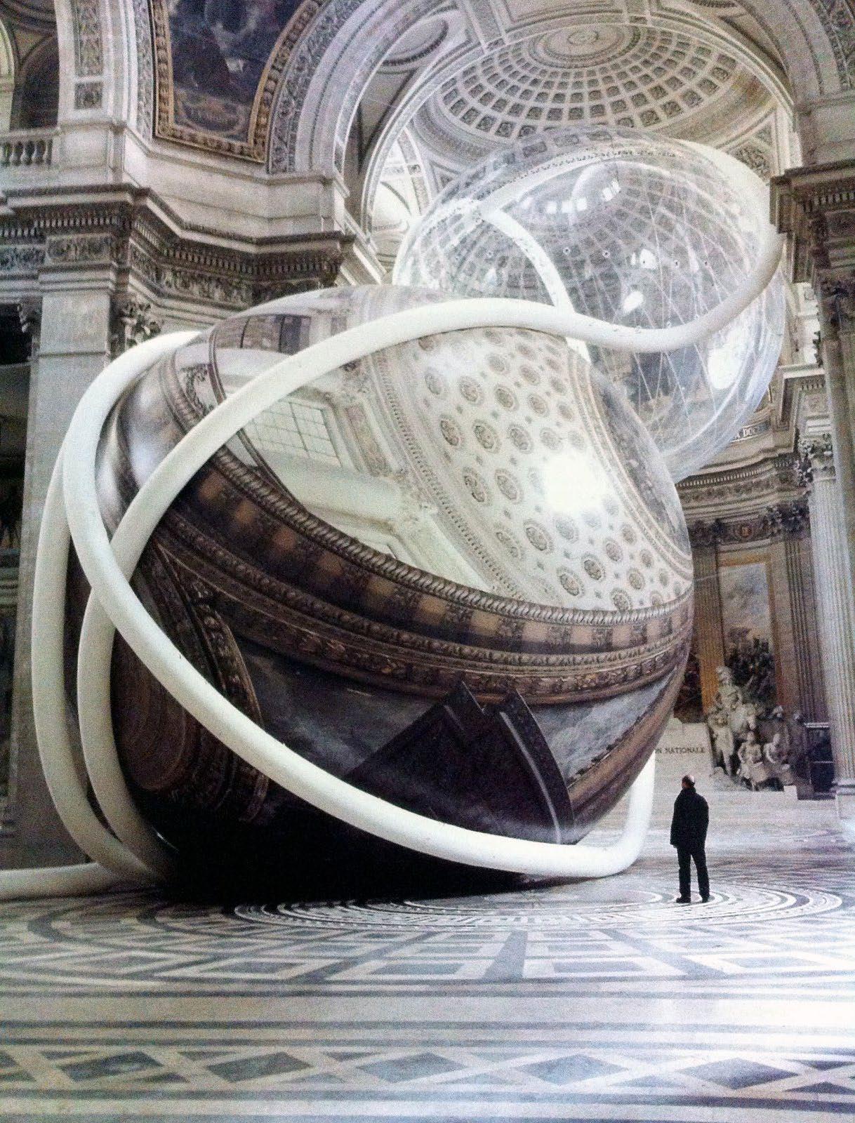 Pinter uses diverse materials, including plastic and nylon, to invite a unique perspective on highlyartistic locations, including Rome’s Pantheon and Paris’ Seine riverside