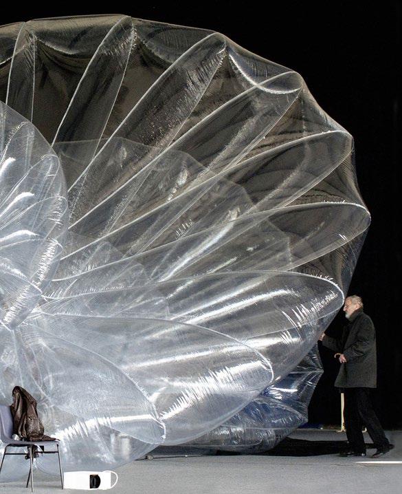 L’artista inglese Steve Messam è noto per le sue installazioni paesaggistiche gonfiabili, che dissemina nei campi e nei villaggi