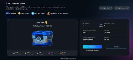The GameFi dynamics introduced by the platform consists of providing liquidity to the pool of the $MBOX token, the game’s DAO token and other BSC tokens established in VAULTS, to generate $KEY BEP 20 tokens that are essential to unlock unique NFTs (MOMO NFT).