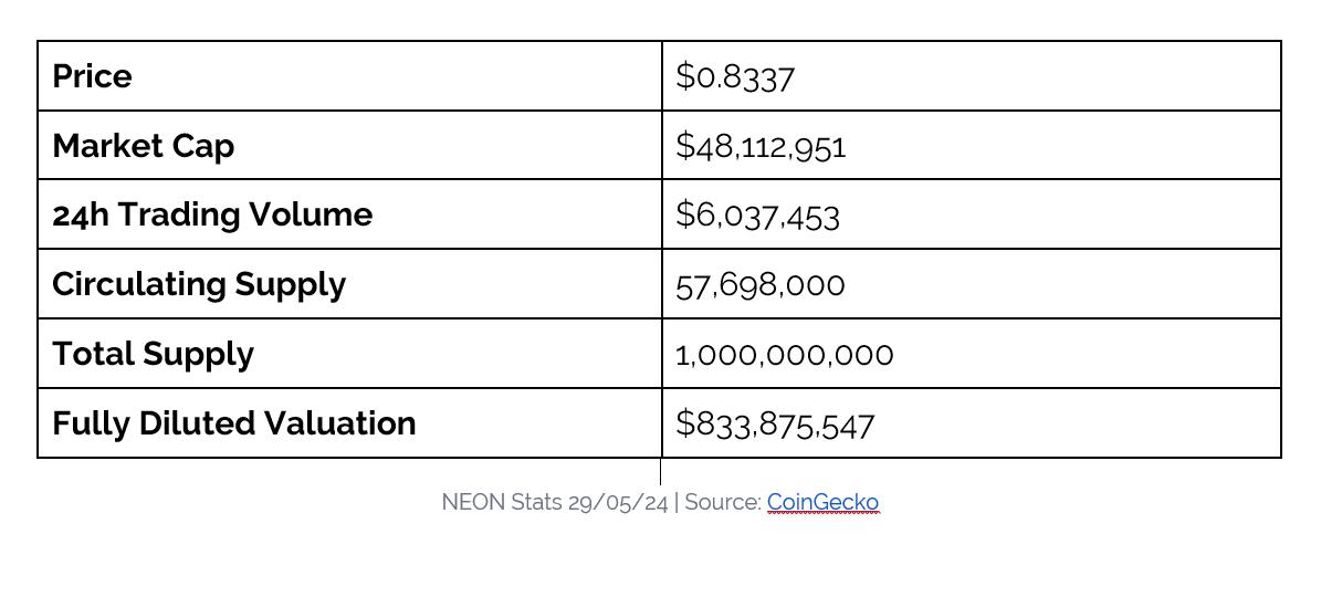 Here are the market stats of the NEON token at the time of writing:
