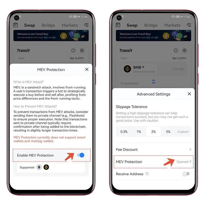 TokenPocket is a multi-chain decentralised wallet with an MEV protection function that reduces slippage and prevents MEV attacks, making transactions more secure.