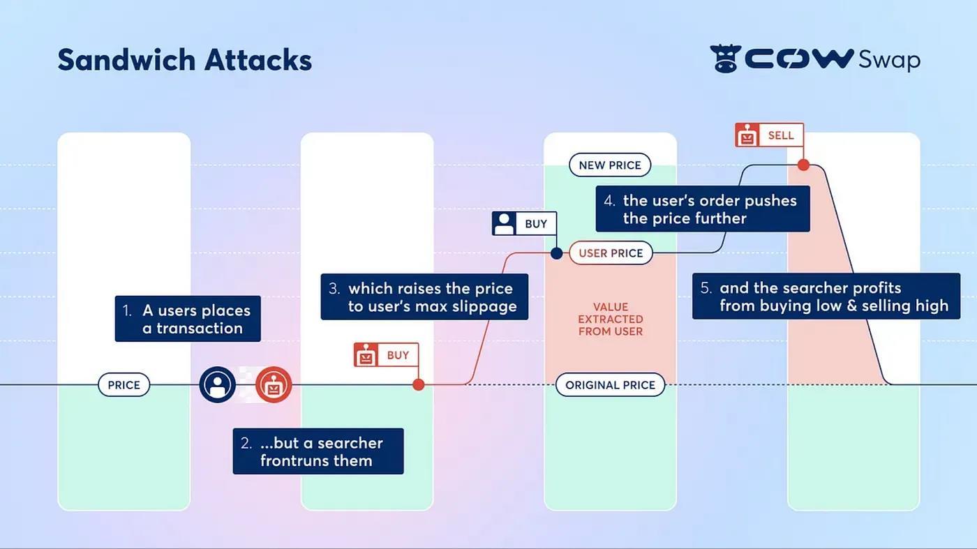 Every time you use a DEX, you set a slippage tolerance to manage the price difference between when the order gets sent and executed. The attack exploits the slippage tolerance set by users to manipulate transactions, which are public in the mempool due to the transparency of blockchains.