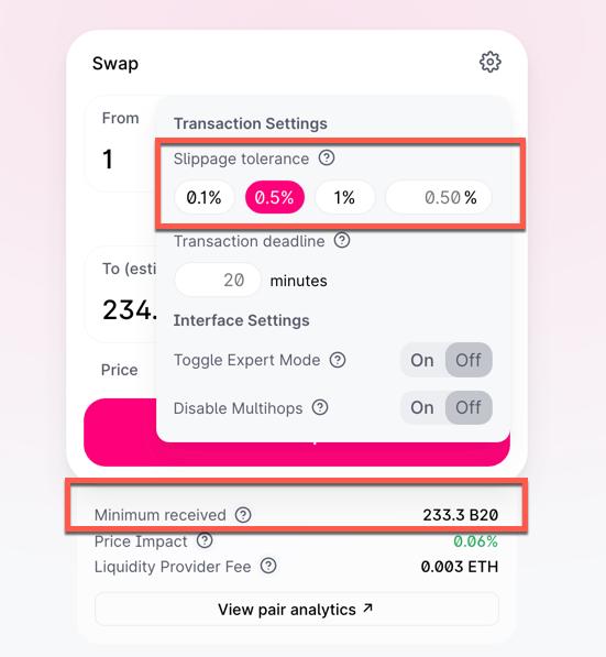 However, remember that even though this is an initial defence against MEV seekers, it is only partially successful, as MEV bots can still extract value from your transactions. In addition, very low slippage can generate failed transactions, especially when exchanging highly volatile cryptos such as meme coins, which require double-digit slippage tolerance.