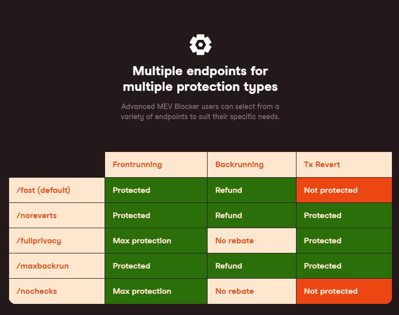 1. Eden RPC A set of endpoints that protect Ethereum users from malicious MEV (i.e. front-running, sandwich attacks)