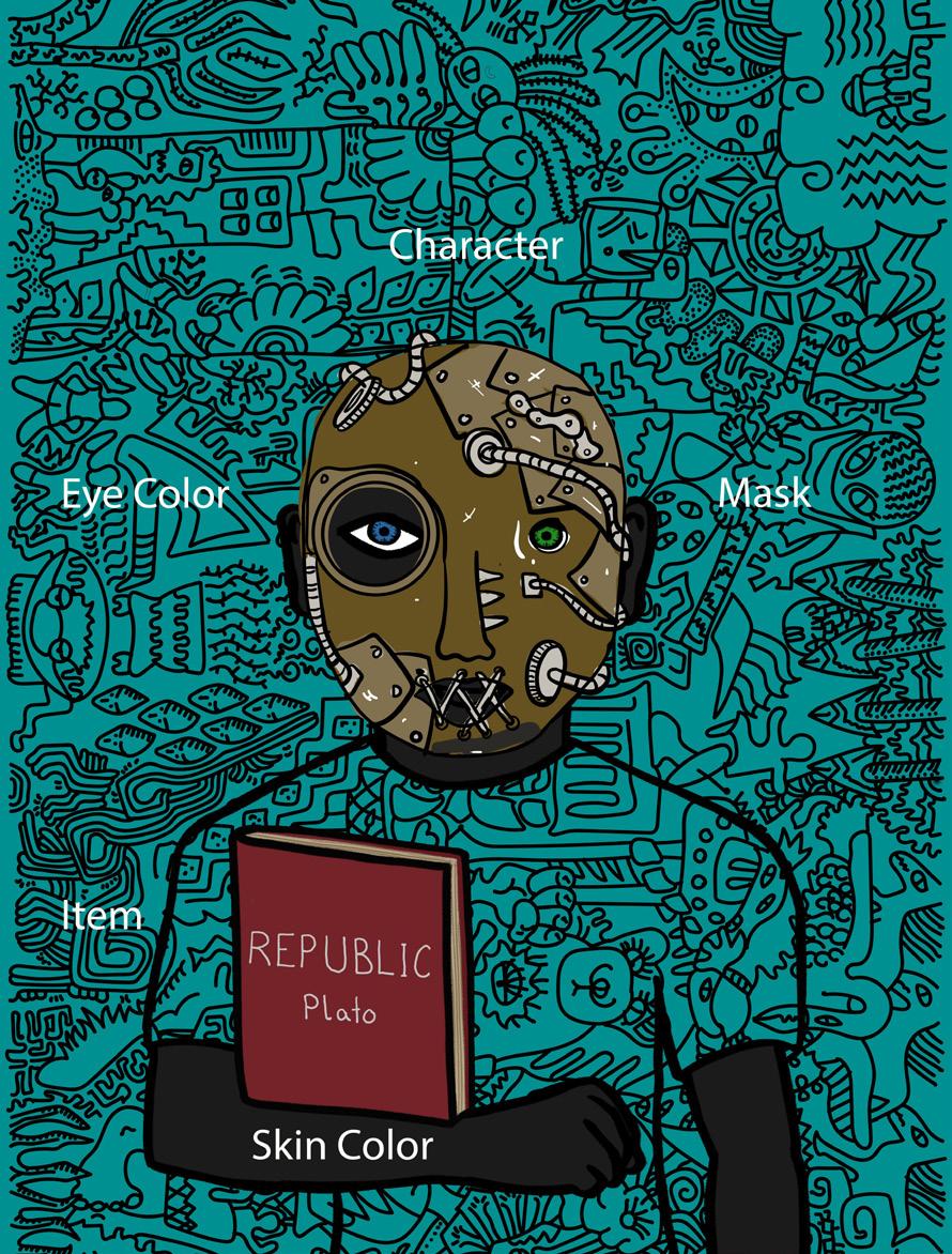 Early NFT projects like Cryptopunks pioneered the idea of non-fungible art, iterative works that drew on a central idea upon which a collection would be based. The Punks’ pixel-art stylings were perhaps a relatively basic proof-of-concept, but it’s an idea that’s been expanded upon and experimented with by many an artist since - and made valuable by the crypto community wanting avatars to represent them and their brand over platforms like Twitter, Discord and Telegram. Hashmasksas we covered in Moon Mag #1 - fused that basic idea of non-fungible artwork with real artistic flair and quality. The original collection is a diverse celebration of styles, cultures, and even memes. With a collaborative of artists producing the randomised elements that form a Hashmask, it was a firmly art-first endeavour that captured the imaginations of the crypto community, and has gone on to do $60m in secondary sales over nearly 2 years of existence.