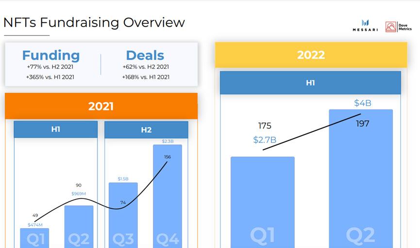 A report from Messari in H1-2022 notes that the gaming NFT vertical is one of a kind, raising more than four times more capital than any other NFT vertical in the first half.