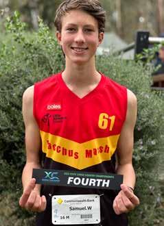 BM Centre Captain, Sam White was next to line up in the combined Under 16/17 3km event. Sam got off to a good start and at the halfway point was sitting in a top 10 position. In the later stages of the race, Sam was able to overtake runners as they headed for the finish line. Once all competitors had finished, age group placings were calculated, and Sam was rewarded for a hard-fought race and presented with a Little Athletics Victoria 4th place ribbon.