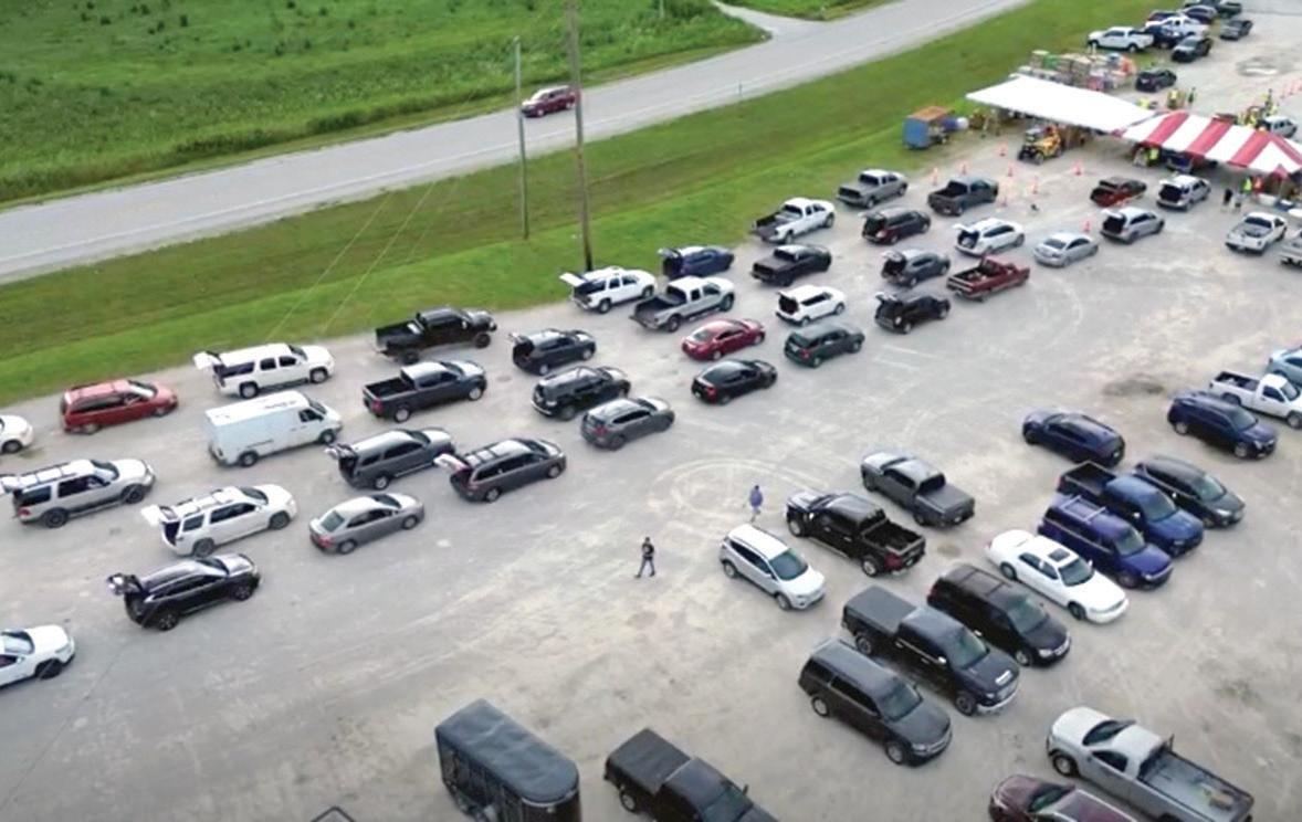 The distribution served around 2,000 families from at least 16 counties. Cars began lining up for the distribution at 3:30 a.m. Some people who came through the line drove 2 hours to wait in a line that spanned 2 miles long at the height of the event.