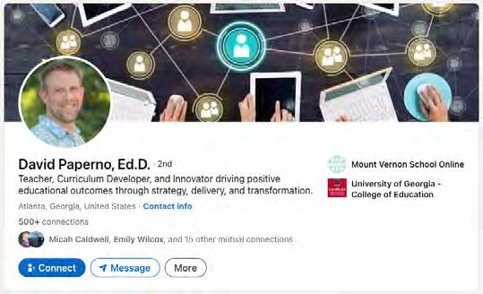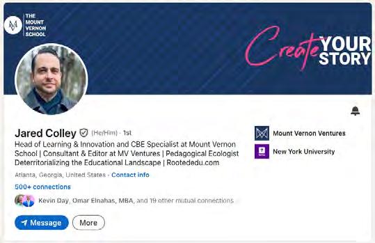 Providing branded and customized resources that visually illustrate the work our team is doing will become increasingly important as we build awareness for the organization's full capacity to design innovative and impactful learning pathways. Social profiles can be customized to reflect the areas faculty and staff serve the Mount Vernon Community.