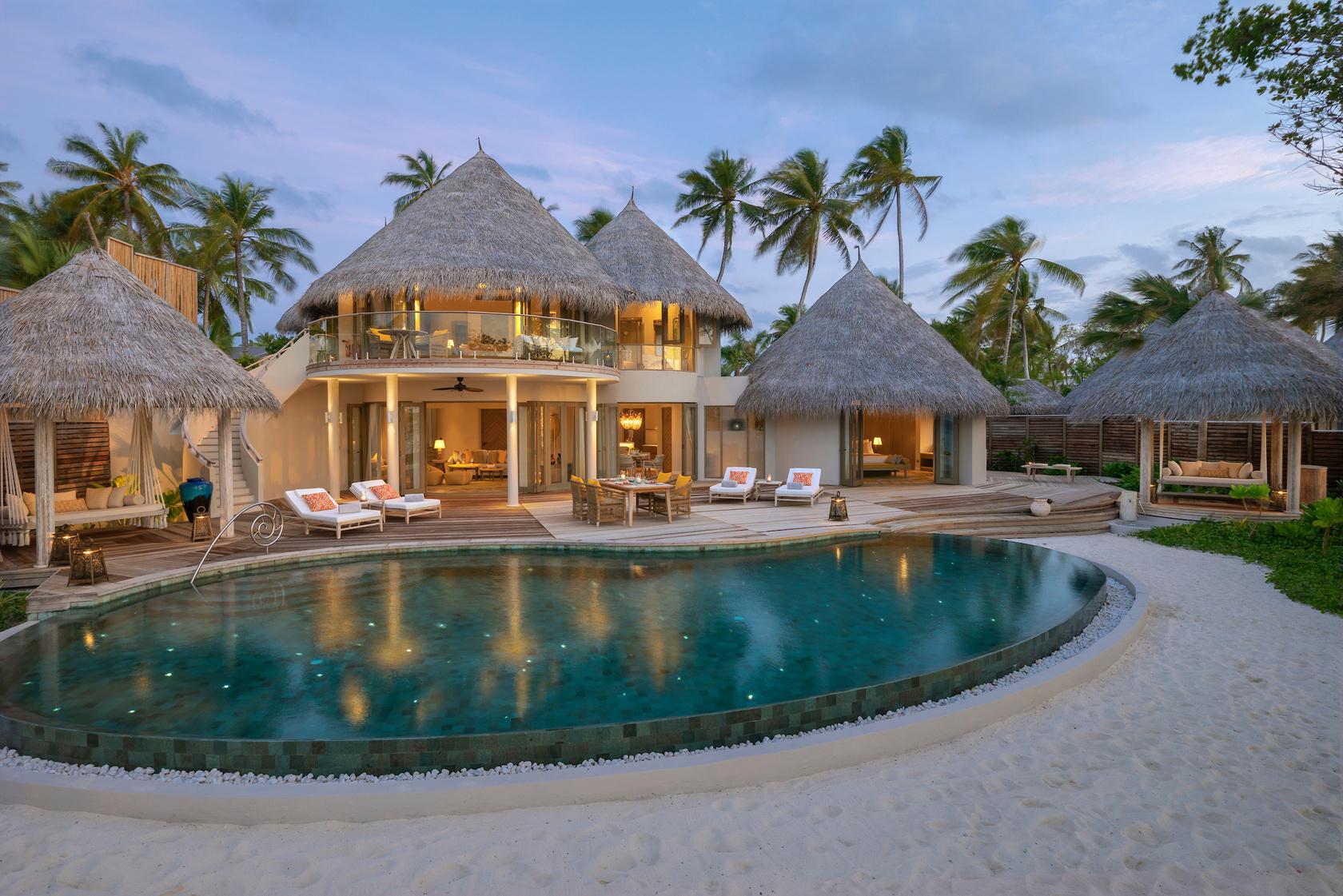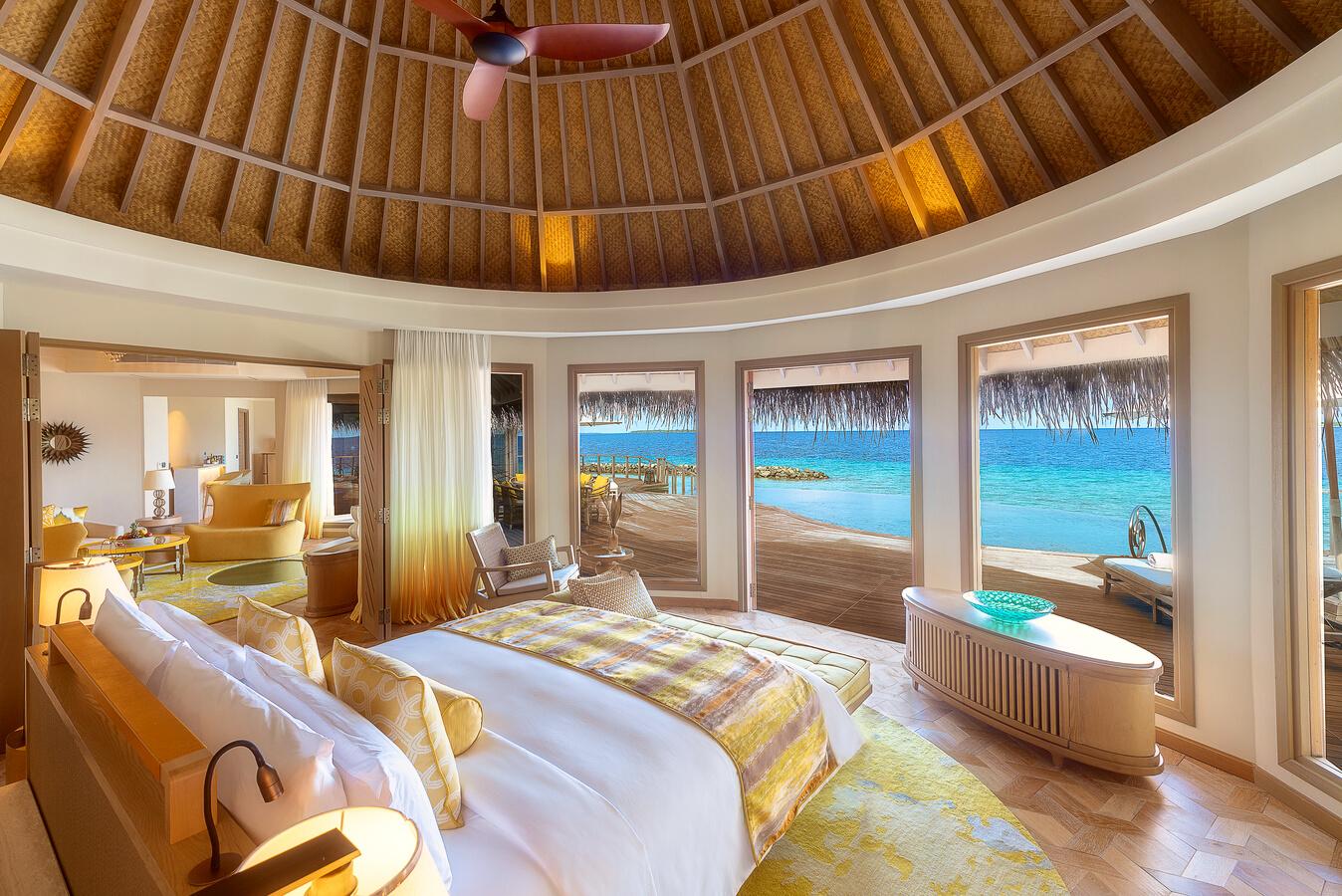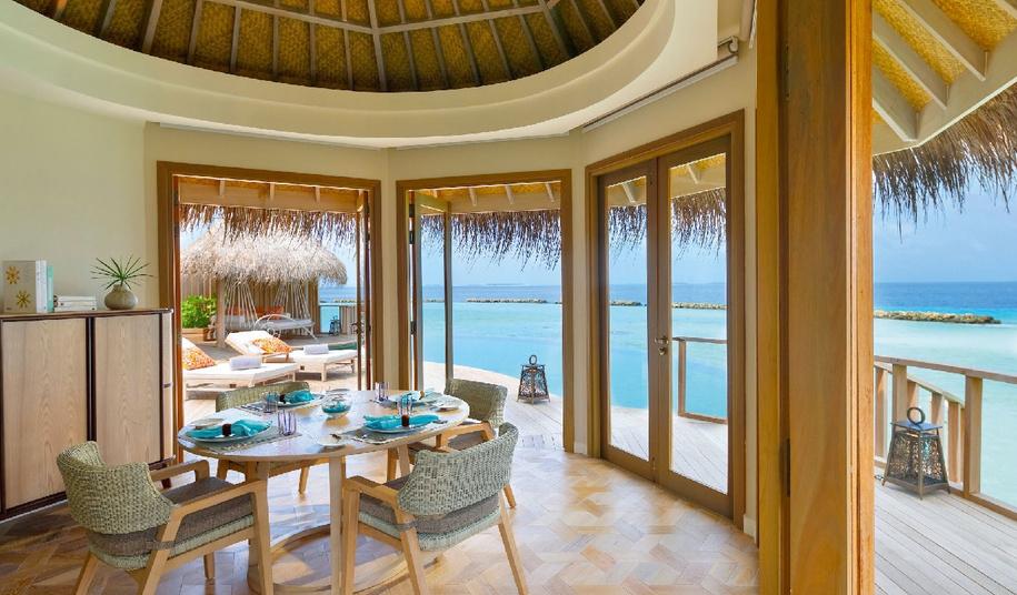Sprawled on stilts over the lagoon, boasting extraordinary sunset views and a wide, curved poolside sun deck, The Nautilus Retreat invites guests to live the quintessential Maldivian dream. With two bedrooms fanning out from the central living and dining rooms, each complemented by a brilliant sea view and en-suite bathroom, this is a space for fostering family reconnection and long lingering memories.