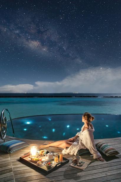 Great conversation, a perfectly mixed drink, delicious tapas served under the sparkle of the Maldivian sky. Our poolside bar welcomes you to enjoy life’s simplest luxuries: sunset, kinship and the peace of an island sanctuary. Complimentary gourmet canapés are available throughout the day.