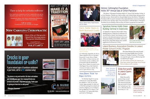 Leland Business Association Donates to Leland Middle School D.A.R.E. Program The Leland Business Association donated $2,092 to the Leland Middle School D.A.R.E. Program on Tuesday, November 4. The money was raised through a reverse raffle drawing that was held this past August. Left: LBA members Lee Kent, Erin Alderman and Sheila Hanby present Leland Middle School Principal Patricia Underwood with a donation. Below: Brunswick County Bike Riders ride for a cause on Highway 133 towards Southport.