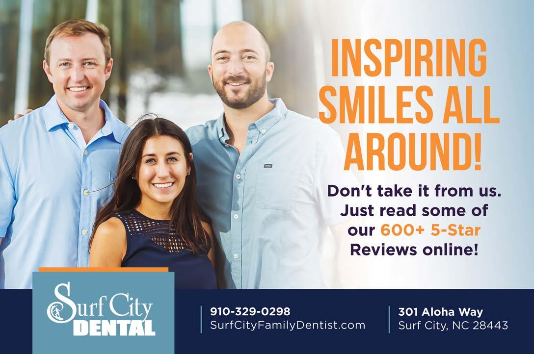 Photographer Eric Vithalini captured this image of surfer Bryan Gillen on the north side of Surf City Pier. Surfing the Topsail waves is a pastime close to many locals’ hearts, and in this issue we have a story about a local surfer who collects wave-riding stories for the world to hear. See our story on Matt Perkins on page 59.