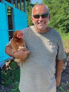 Changin’ Ways Farm presents a bucolic scene on a sunny, spring day. A dozen or so chickens scrabble in the grass, clucking contentedly around two fancylooking Caribbean-blue chicken coops. Beyond the pond, Berkshire hogs root in a pen. In fields on the far side of the new barn, red and green lettuces shiver in the light breeze, and green leaves of elephant garlic stand tall nearby. The greenhouses are full of tomatoes, beets, spinach, carrots, kale and bok choi, and in the tidy fields are planted with potatoes and onions.
