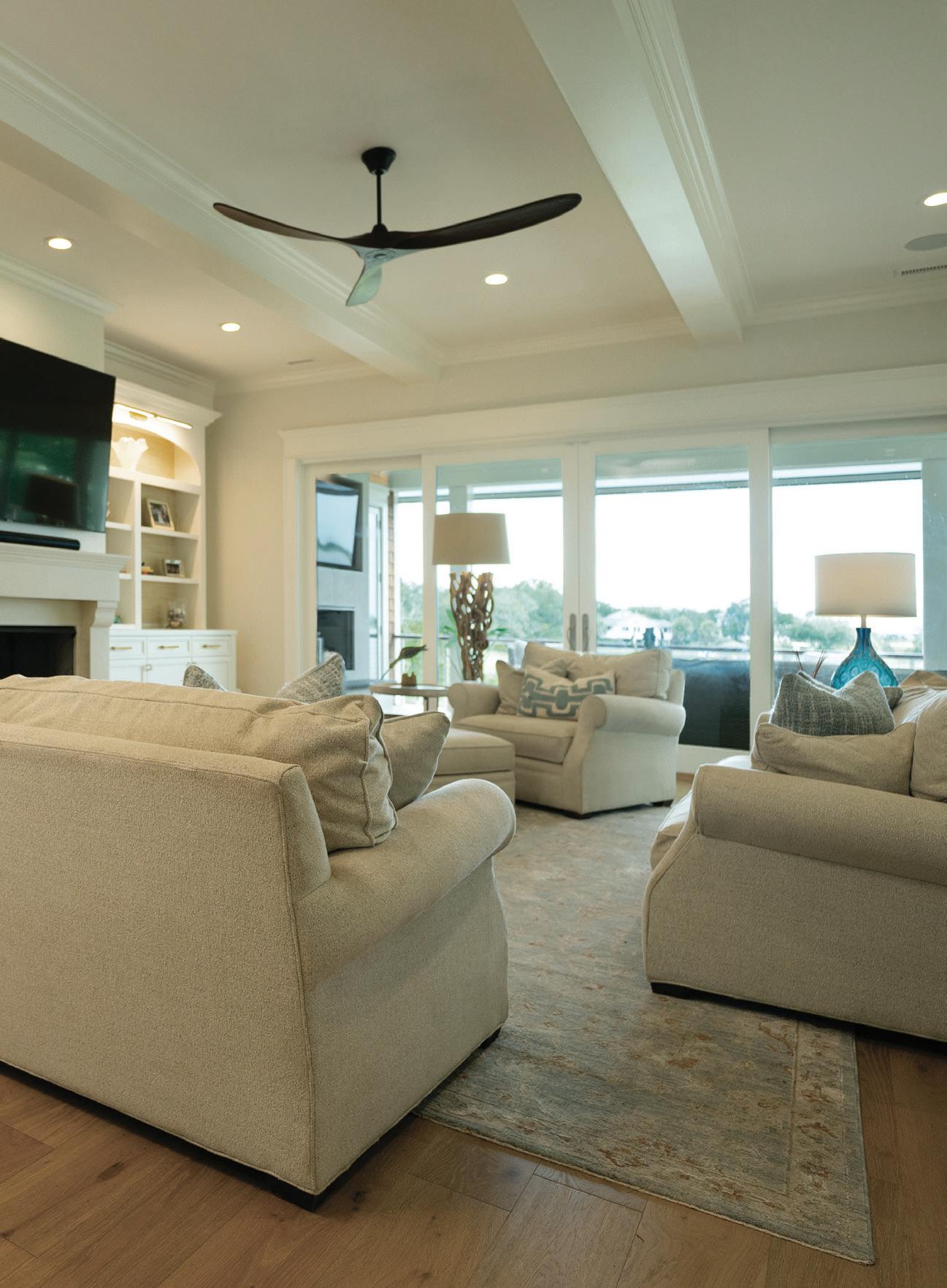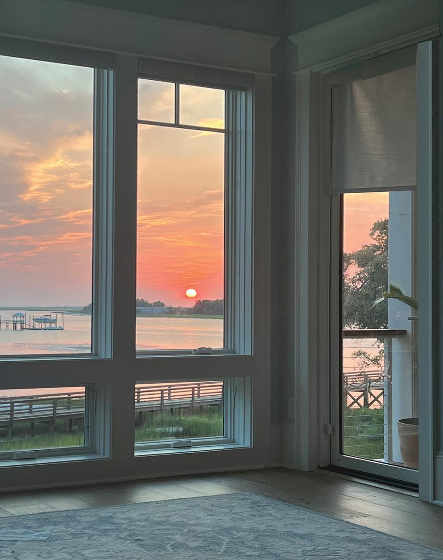 “We framed the wall up in a way where the homeowners could see how the windows would look. They would bring their lawn chairs at night to sit and visualize it. They ended up going with the bigger window and now they are so thankful to wake up to unobstructed views of the marsh and the water,” says Lanphear.