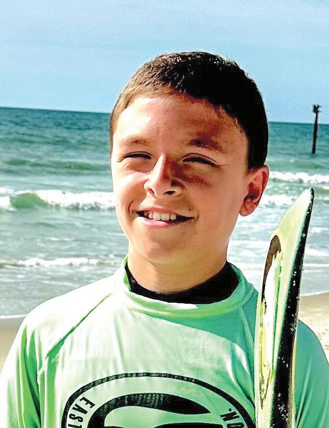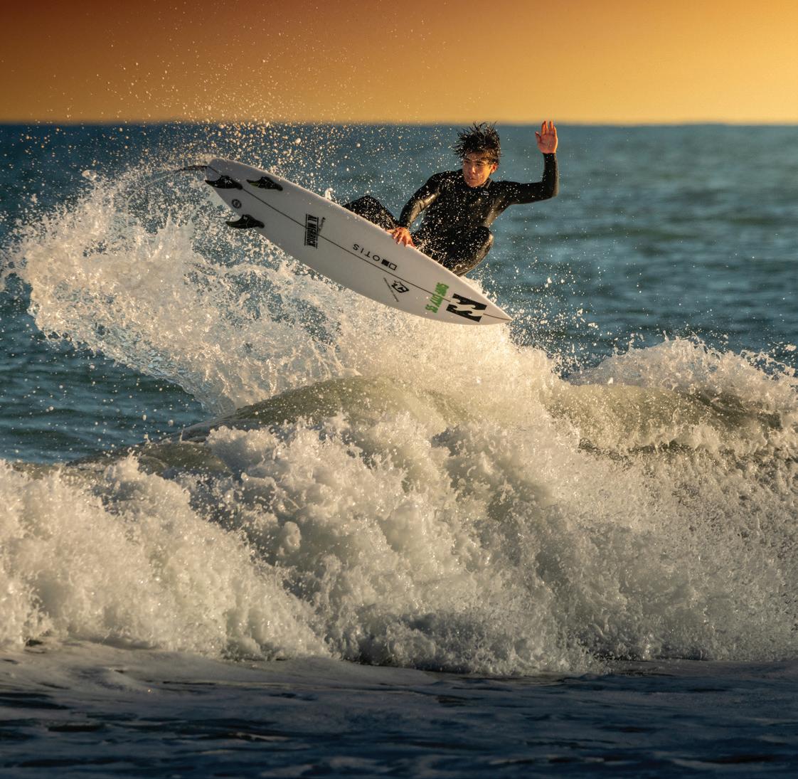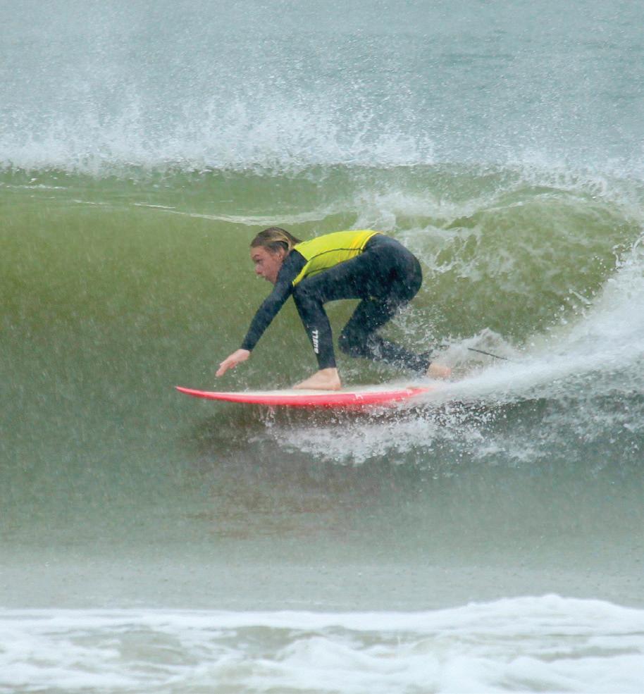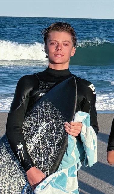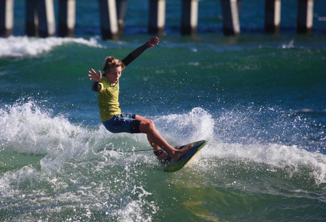Finn Viorel, age 16, makes a nice turn as he catches a wave during an afternoon surf session south of Johnnie Mercers Pier in March 2024. Viorel first surfed with his dad when he was 5, but took up the sport for real when he was 10.