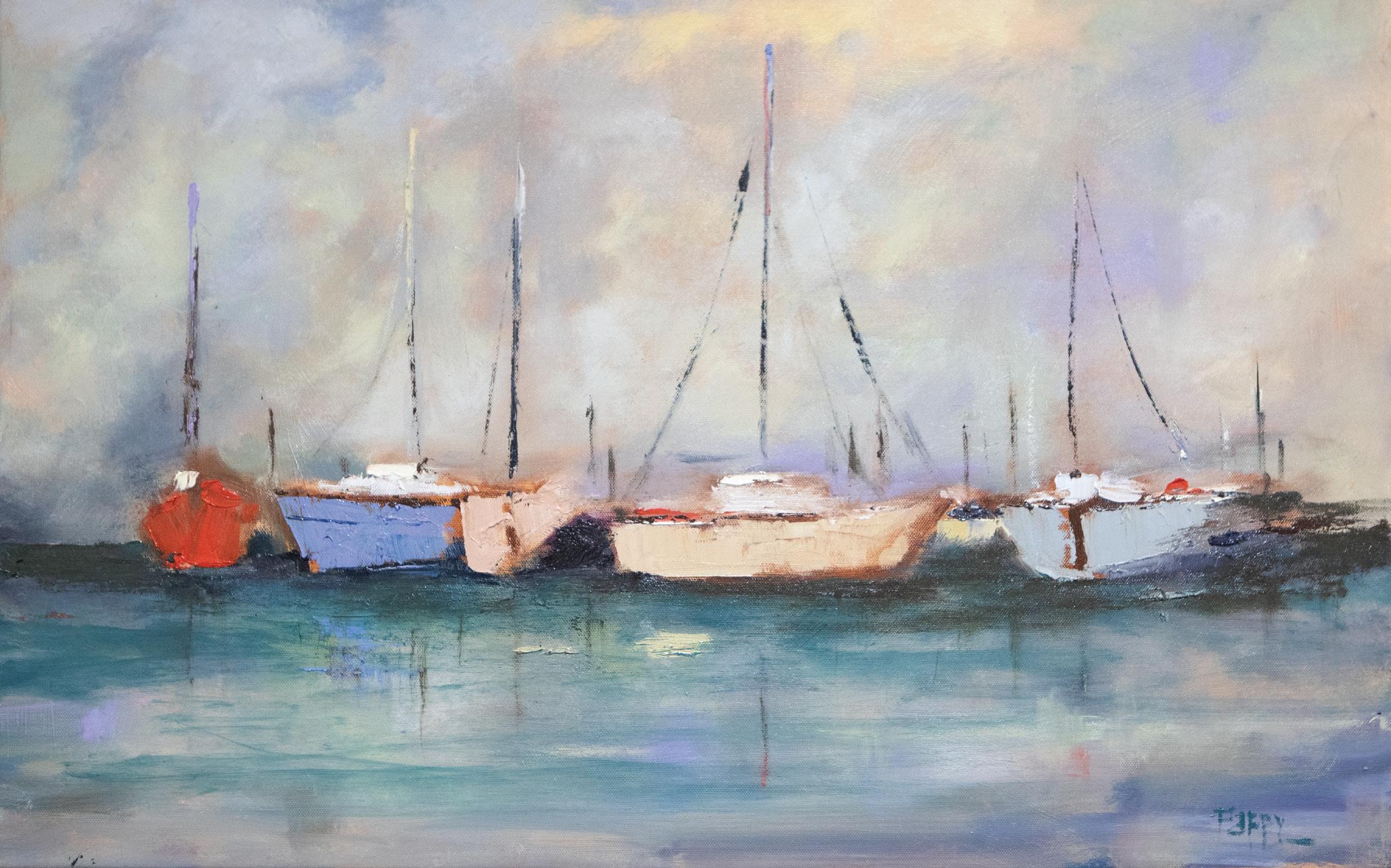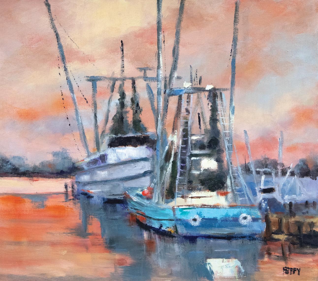 Capturing quaint images of sailboats, shrimpers and harbor life is the current work of impressionist Pappy Khouri.