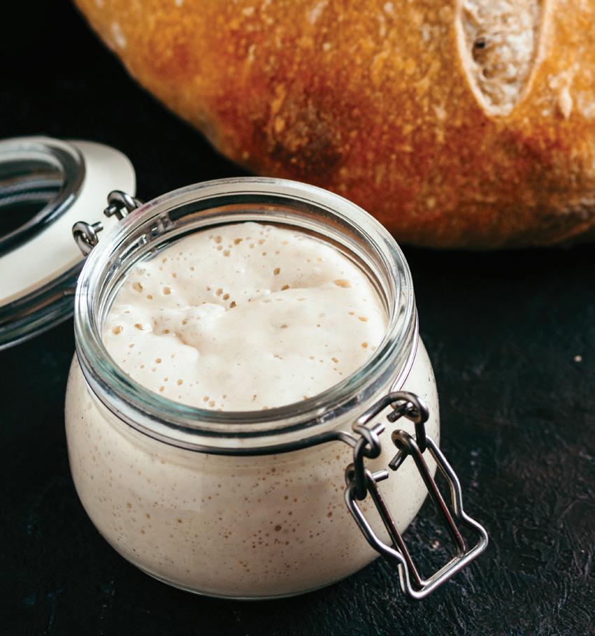 For the jar, any sturdy glass or ceramic container will do, preferably one with straight sides to make it easy to scoop the dough out and one that won’t degrade