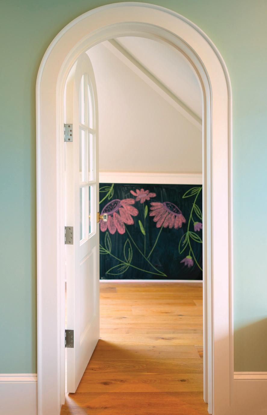 “The custom-milled arch entry door leading into this special space makes you feel like you are entering into a fairy tale,” says Satterfield.