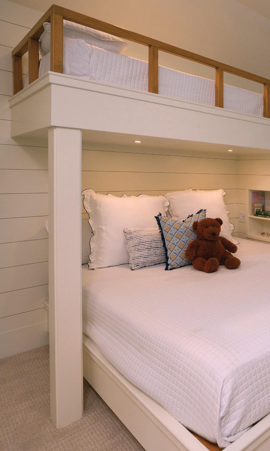 WITH now eight grandchildren, the house needed a sizeable bunk room. This one has twin bunks up top and California kings below and an ensuite bathroom.