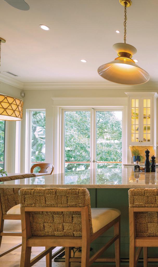 INITIAL plans called for four single windows on the marsh side of the primary bedroom suite, but Lanphear pushed for a large picture window instead with transoms beneath.