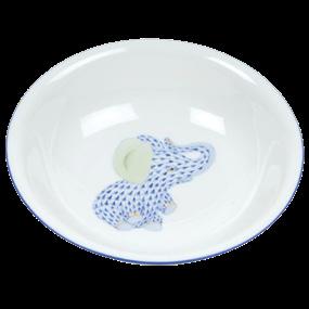 A heron print wallcovering is complemented by a geometrical pattern on the ceiling.