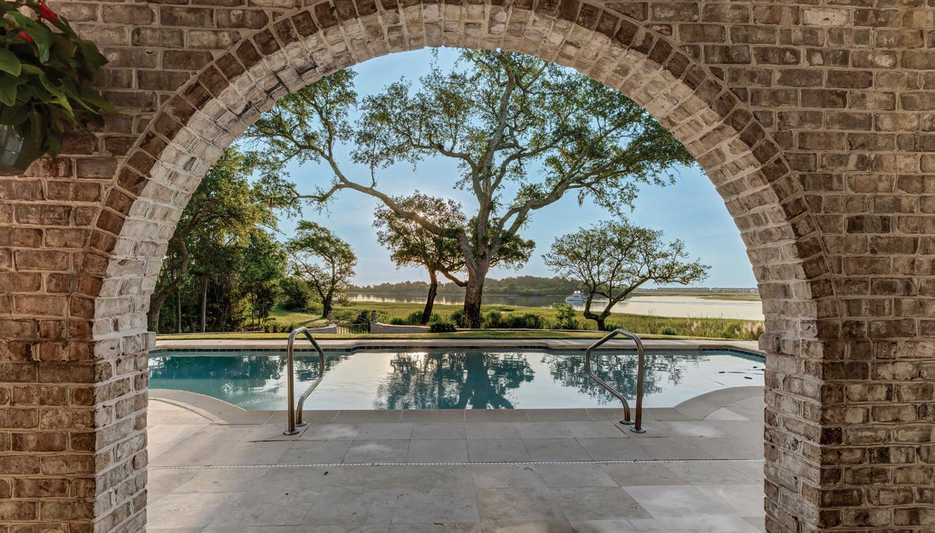 Tile on the outdoor fireplace resembles oyster shells. All tile was sourced by Southeastern Tile Connection and installation was by Carr’s Ceramic Tile of Wilmington.