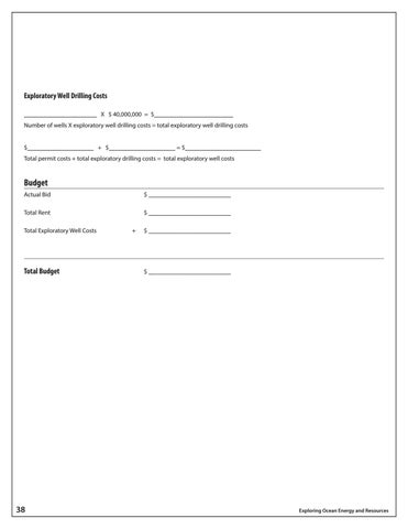 Exploratory Well Drilling Costs _______________________ X $ 40,000,000 = $_________________________ Number of wells X exploratory well drilling costs = total exploratory well drilling costs $_____________________ + $_____________________ = $________________________ Total permit costs + total exploratory drilling costs = total exploratory well costs