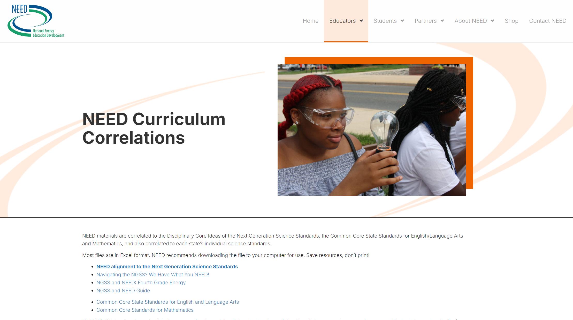 This guide has been correlated to each state’s individual science standards. These correlations are broken down by grade level and guide title, and can be downloaded as a spreadsheet from the NEED website.