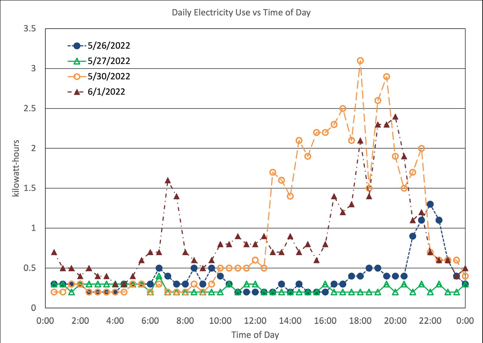 Smart meters record and provide real-time electricity use from several days prior to the current day. The meter data allows users and families to view, in real time, how their consumption compares to the previous few days and averages out over the year. This data can be useful in helping families to plan for their utility spending, look for patterns, and curb consumption if necessary. In this activity, students will analyze electricity use graphs for a hypothetical family.