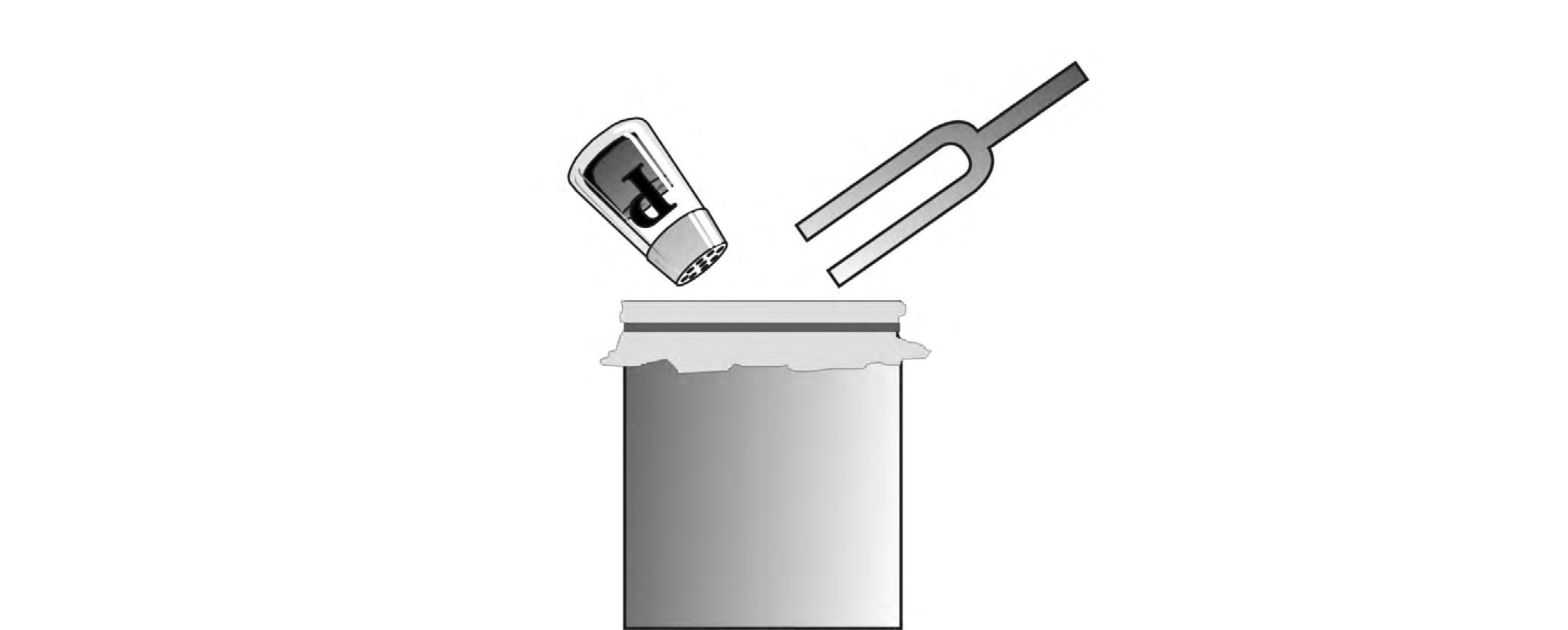 2. Hold the small tuning fork with one hand and strike it with the mallet, as shown in Picture 1. Listen to the sound of the tuning fork and feel its vibration. Strike the tuning fork again and gently touch your cheek in front of your ear.
