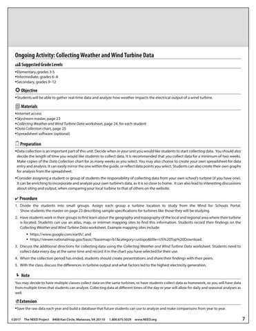 Ongoing Activity: Collecting Weather and Wind Turbine Data Suggested Grade Levels Elementary, grades 3-5 Intermediate, grades 6–8 Secondary, grades 9–12
