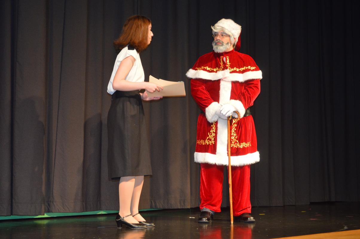 The Theatre Department here at Newfield have been hard at work putting together the fall play, Miracle of 34th Street, since the first day of school. After months of rehearsal and preparation, the Newfield community was able to buy their tickets to see the merry production. The excitement among the cast and crew could be felt when walking through the backstage preparations, with everyone strapping into costume and helping braid each other's hair for wigs. The students of the drama department were very self-sufficient and did not need their director Ms. Joan Meichner hovering over them; she had bigger fish to fry.