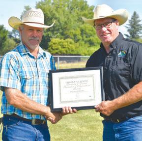 14 – August 14 market the 40th anniversary of the Ranfurly Agricultural Fair. Alberta Agricultural Societies Association President Tim Carson presents special certificate to Ranfurly Ag Society President Dwayne Durie.