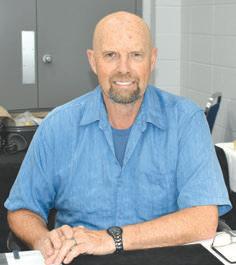 Ed Ahlstrom next to the sunflowers. (Rosanne Fortier/Photo)