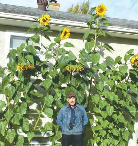 Ed Ahlstrom and his wife, Marianne’s sunflowers by their residence in Vegreville grew to 12 feet this year.