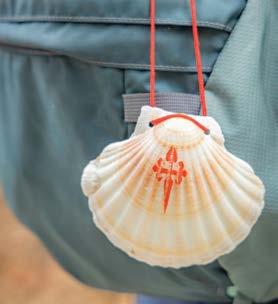 Alexandria carried a backpack containing 15–20 pounds of supplies, including clothes, water bottles, foot care items, phone chargers, an emergency kit, protein, duct tape and Teva sandals for tired feet at day’s end. Nancy elected to have her pack, similarly stocked, transferred by porters from one overnight accommodation—primarily guesthouses and hostels—to the next. Both wore a scallop shell, the iconic symbol of the Camino. A Camino passport, stamped by participating business establishments along the way, would