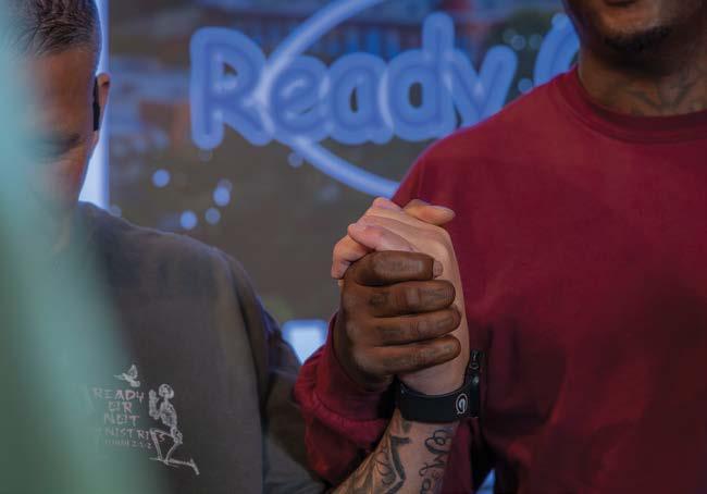 Lance began leading prayer meetings and devotionals while incarcerated, earning unexpected respect from everyone, including gang members and people of other faiths. When Lance left prison for the last time, he thought about how his mother always called him “Jonah” in reference to his running from God. “I remembered a Bible verse, Jonah 2:1–2: ‘In my distress I called to the Lord, and he answered me. From deep in the realm of the dead I called for help, and you listened to my cry,’” Lance said. “I kept writing ‘Ready or Not’ because I realized, whether you’re ready or not, all you’ve got to do is make the first move.” He met Toni Tompkins, a woman with a similar story of struggle and redemption, and they started a Facebook page called Ready or Not Ministries. “It has grown into a full-blown ministry,” Lance said. “Through our ministry, we provide services for the homeless and the hopeless and can