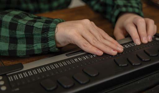 Kennedy is not just a strong Braille reader. She loves technology and dives into multiple interests and hobbies. She uses an electronic Braille device called the Chameleon, which lets her type and read Braille simultaneously, loves writing stories and recently starred in a commercial for the American Printing