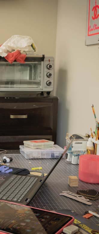 while Pless worked as an electrician and an artist, specializing in leather. He made countless purses, wallets, gun holsters and belts, each artfully detailed with embossing and hand-painted dyes. “People think I must own a lot of the belts I made,” he said, “but I never made one for myself despite making thousands of them.”