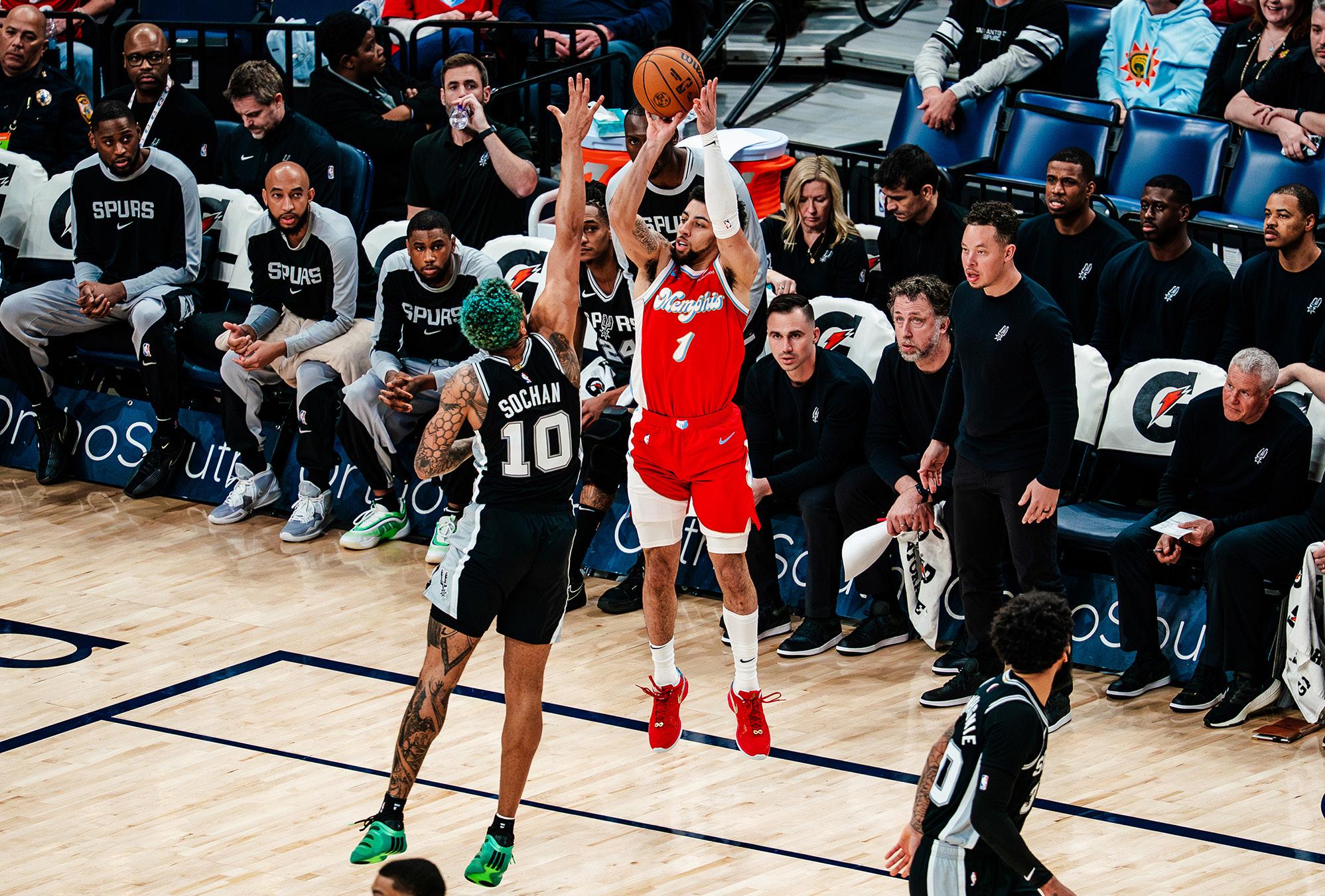 also added seven assists in 32 minutes. Jeremy Sochan added 18 points and a team-high 11 rebounds. Guard Keldon Johnson scored 15 points, and forward Julian Champagnie contributed 14 points.