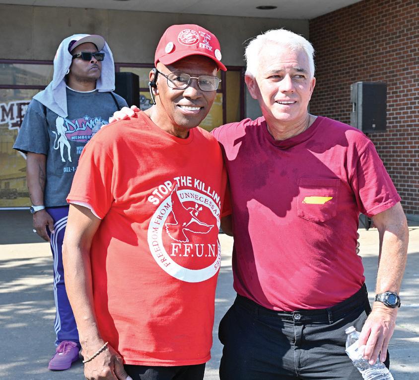Anti-gun violence advocate Stevie Moore of Freedom from Unnecessary Negatives (FFUN) chatted with Shelby County District Attorney Steve Mulroy during the Gun Down Don’t Shoot Walk/Run on Fathers Day weekend. (Photos: Gary S. Whitlow/GSW Enterprises/Tri-State Defender)