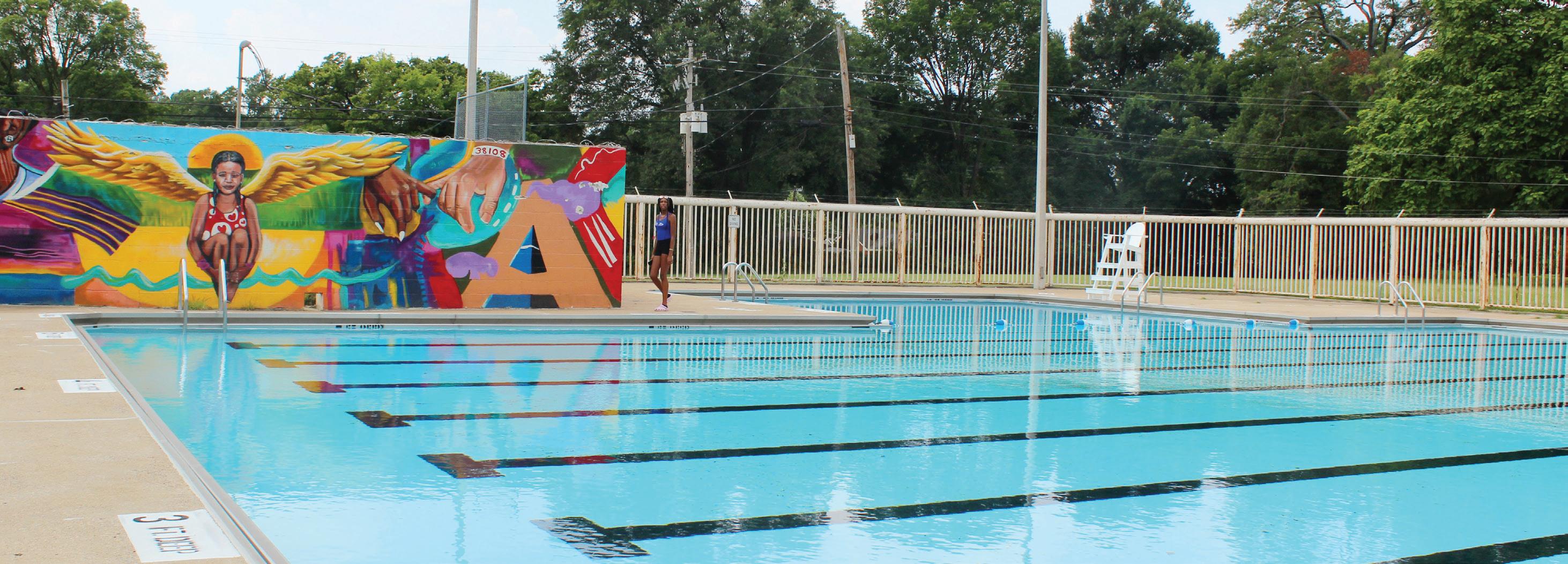 which were paid for from the city’s $75 million Accelerate Memphis bond issuance. Among the repairs and upgrades: a pool liner and new equipment room including pump and lter. ere’s also the production of the new mural at the park, done in collaboration with the Urban Arts Commission.