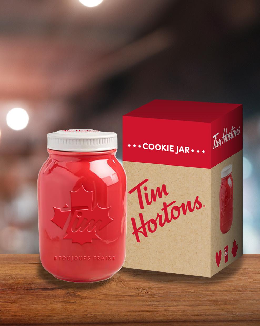 Store your treats the Tims way. This custom ceramic cookie jar features the embossed Tim Hortons Always Fresh logo, classic red finish, and a white lid topped with a red maple leaf. Generously sized to fit cookies of all shapes and sizes—fresh looks never tasted so good.