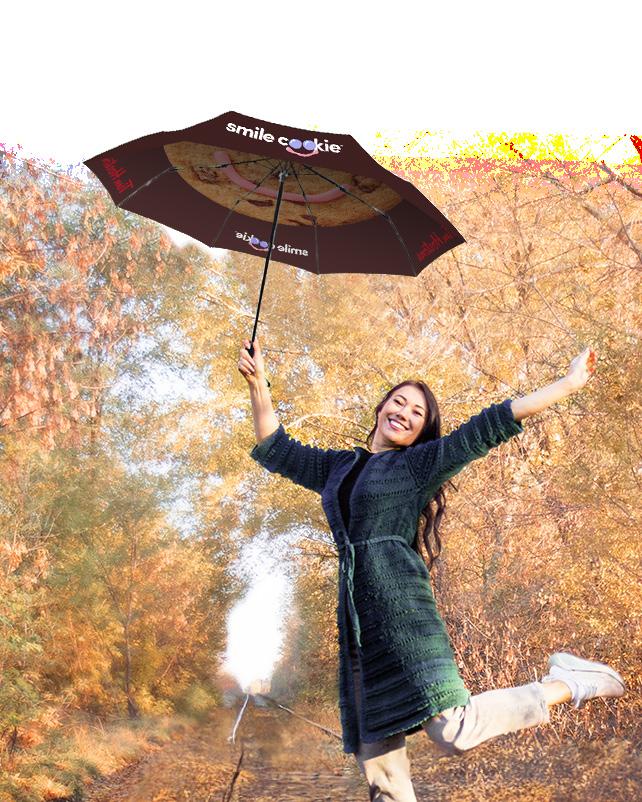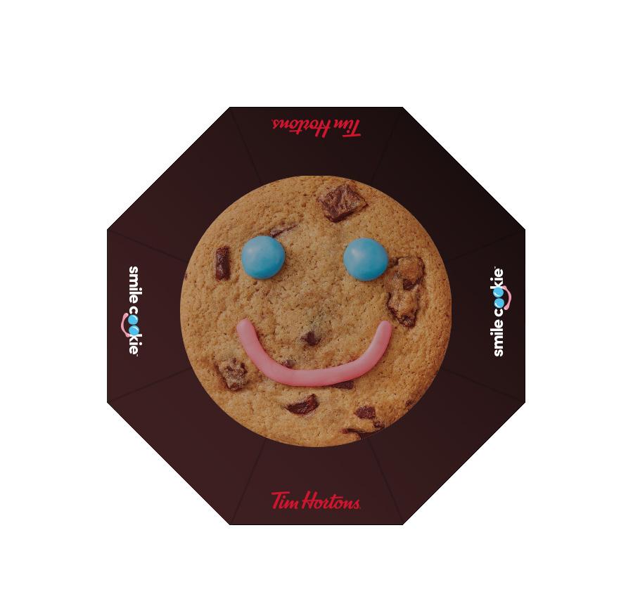 up even the stormiest days! This 38” automatic umbrella is covered Cookie prints with a giant cookie smiling right in the center. Open push of a button and carry a little Tims happiness wherever you go.