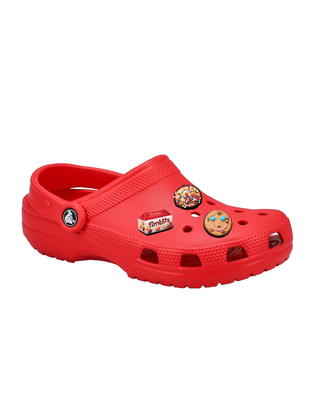 Step out in Tims style! This 3-pack of Croc charms includes a Timbits box, a sprinkle Timbit, and a Smile Cookie—the perfect way to add a little fun to every step.