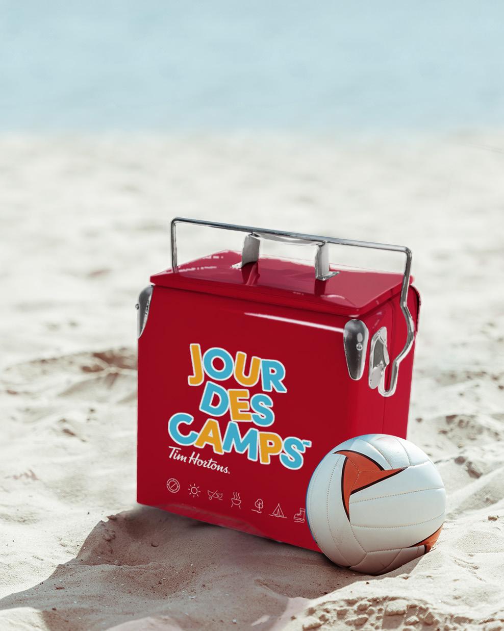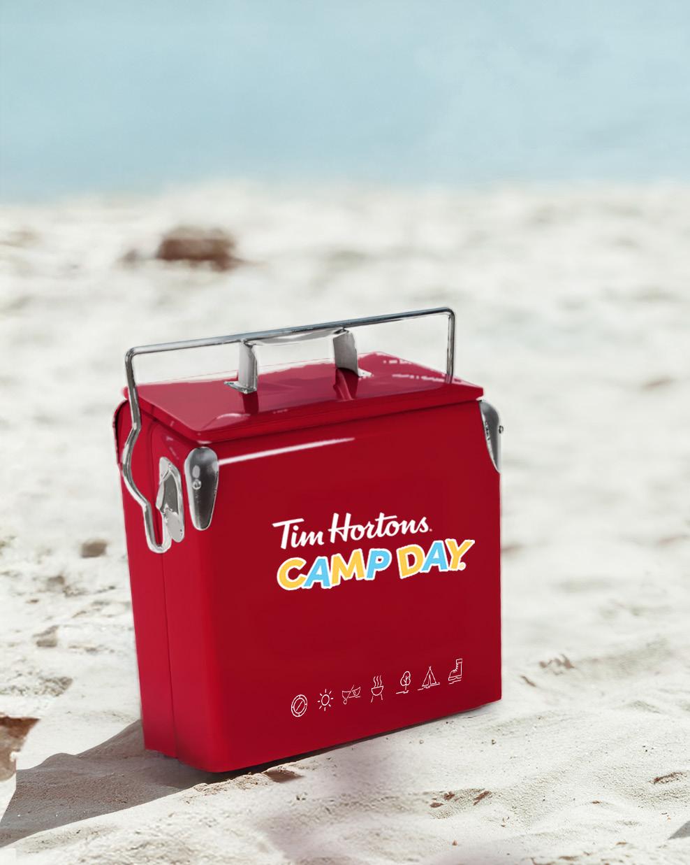 Cool drinks, classic metal cooler brings to your summer setup finish and the Tim Hortons logo surrounded by icons. Sturdy and perfect for road trips, hangs, or keeping refreshments at your next get-together. the day takes you, cool convenience Camp Day twist.