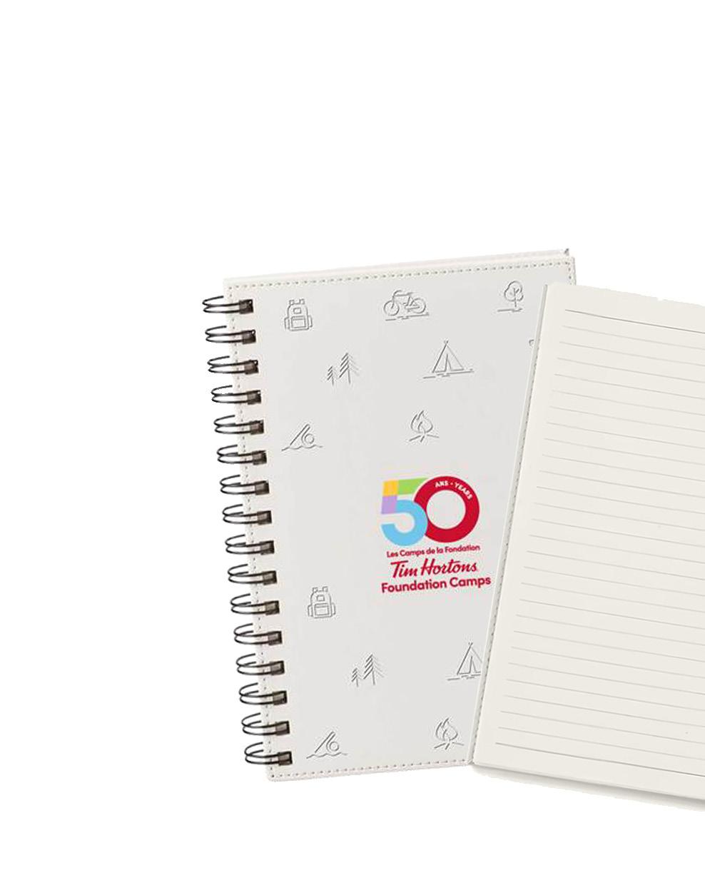 Your ideas, all in one place. This hard cover, spiral-bound vinyl journal features 80 ivory-lined, perforated sheets— perfect for notes, lists, and everyday planning.