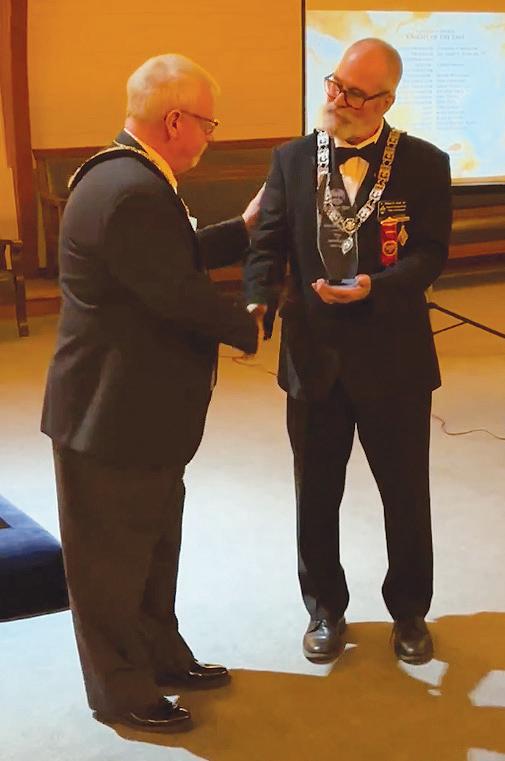 The Valley of Springfield’s Ill. Melvyn Hook, 33°, accepted the Valley of Excellence award from Ill. Scott Ingliss, 33°, Deputy for Massachusetts.