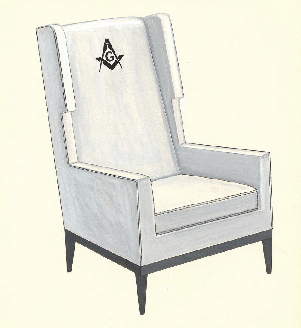 In the early decades of the 1800s, Masonic ritualist Jeremy L. Cross noted that during the opening ceremony of the lodge, “…the Master is reminded of the dignity of character which he is to maintain…and the brethren of the reverence and respect due from them….” Since Cross’ time and before, Freemasons have turned their attention to procuring lodge room furnishings that support the work of the lodge, and in the case of seating for officers, underscore the Master’s authority within the lodge. The seat from which the Master presides has taken different forms over time, shaped by fashion, tradition, and the essential role of a lodge Master.